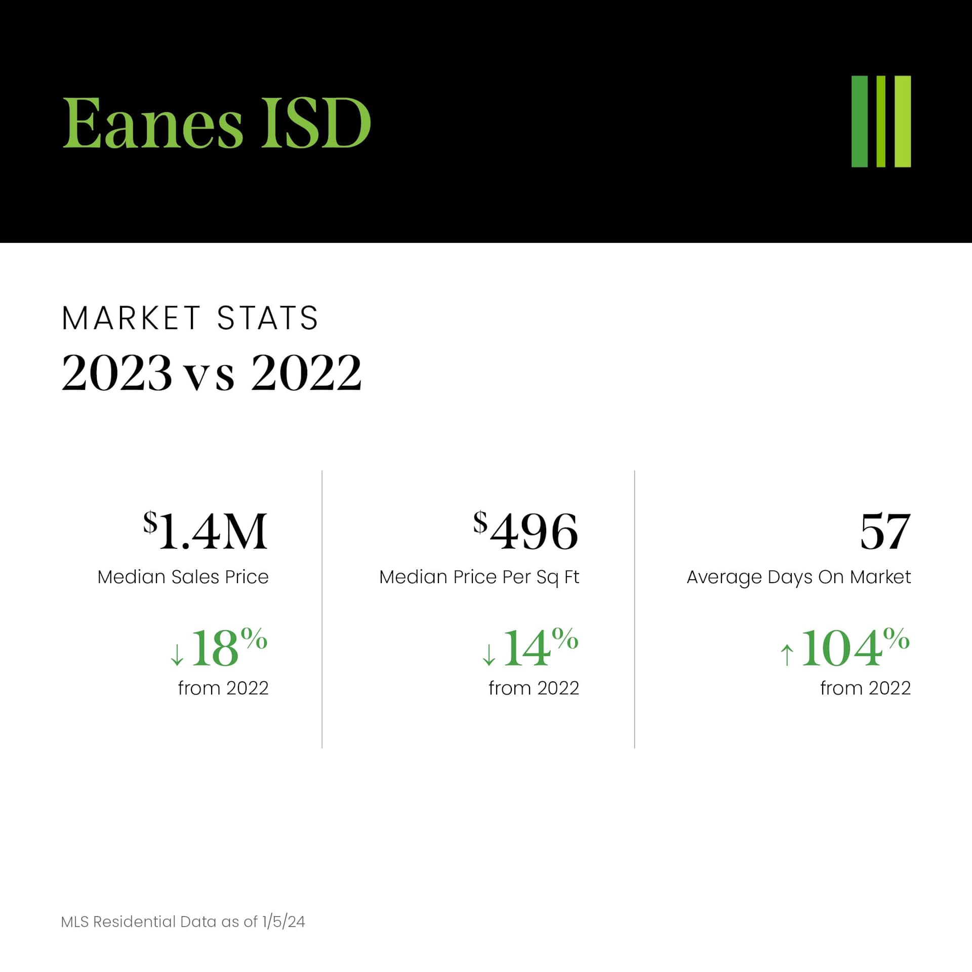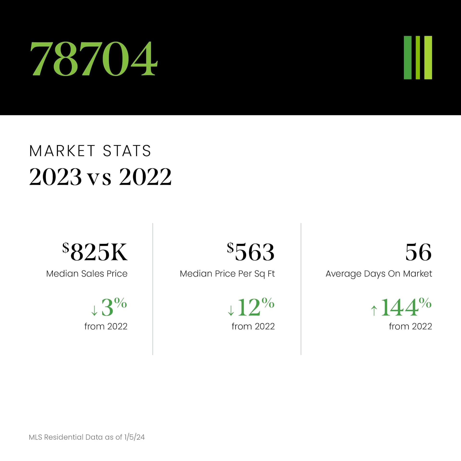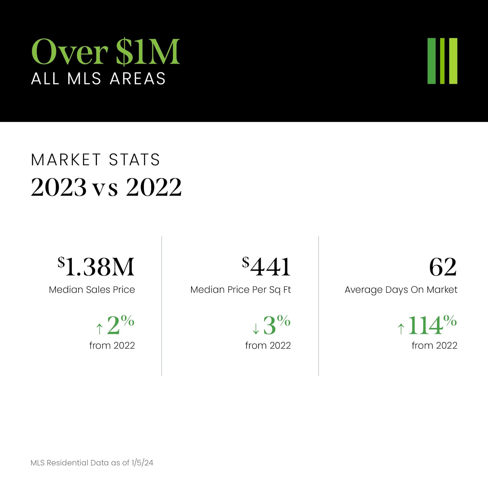 Data compromised of MLS Residential Data from 1/1/23-12/31/23; does not include off-market transactions.