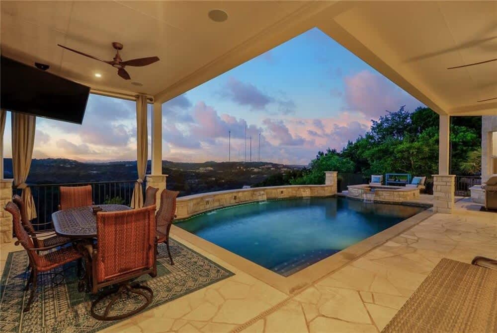 Located in the rolling Westlake Hills, this property is an entertainer’s dream. Step out to the fire-pit area in the side yard, onto your pool deck or expansive two-level patio to take in the stunning views.