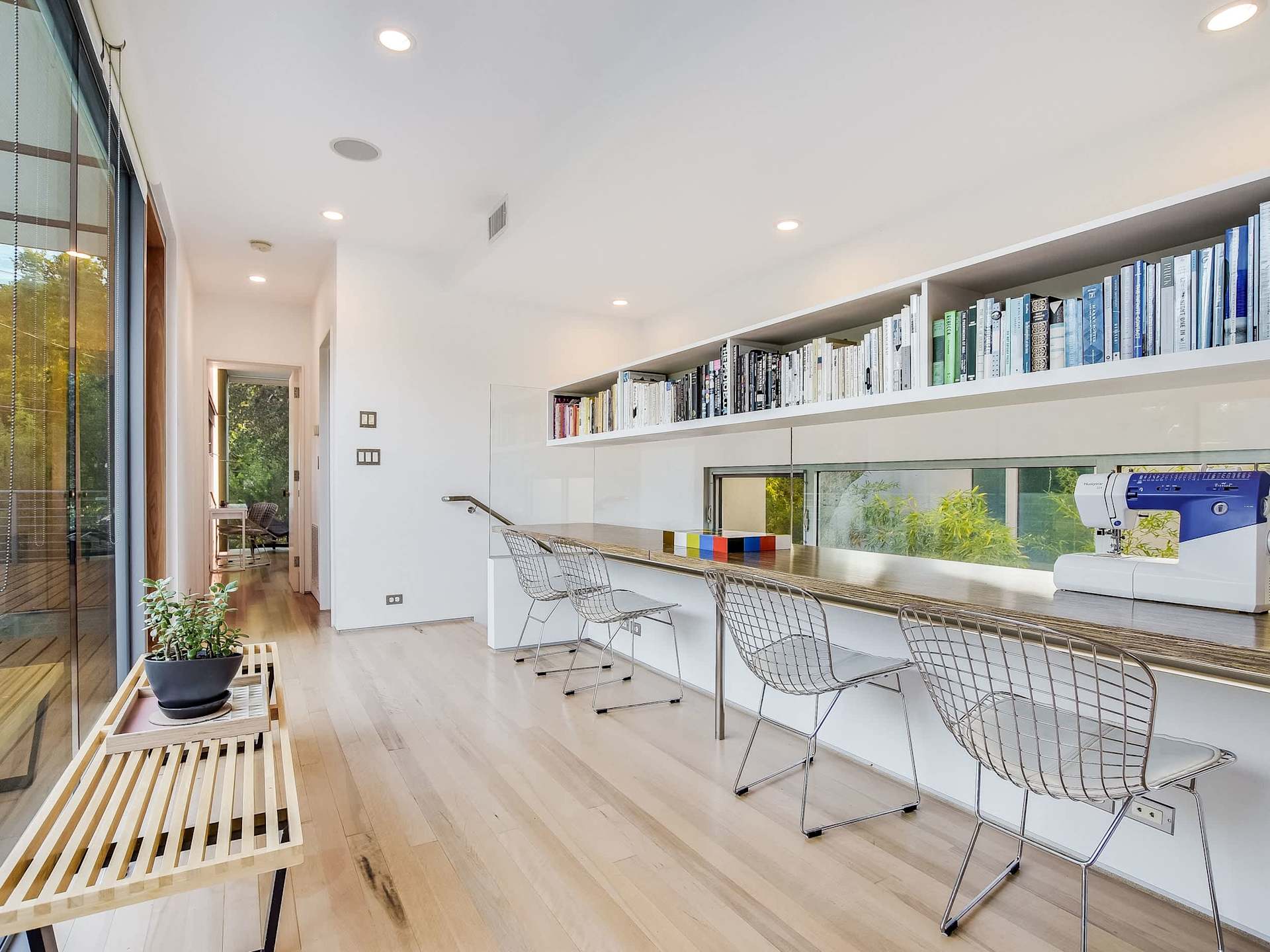 Clean lines and bright interiors create an atmosphere perfectly suited for productivity at 1004 Jewell Street. Missing no opportunity for functionality, this built-in sits just off the 500+ square foot sun deck and offers stunning amounts of natural light. Owners will also enjoy a small built-in desk at the foot of the stairs as well!