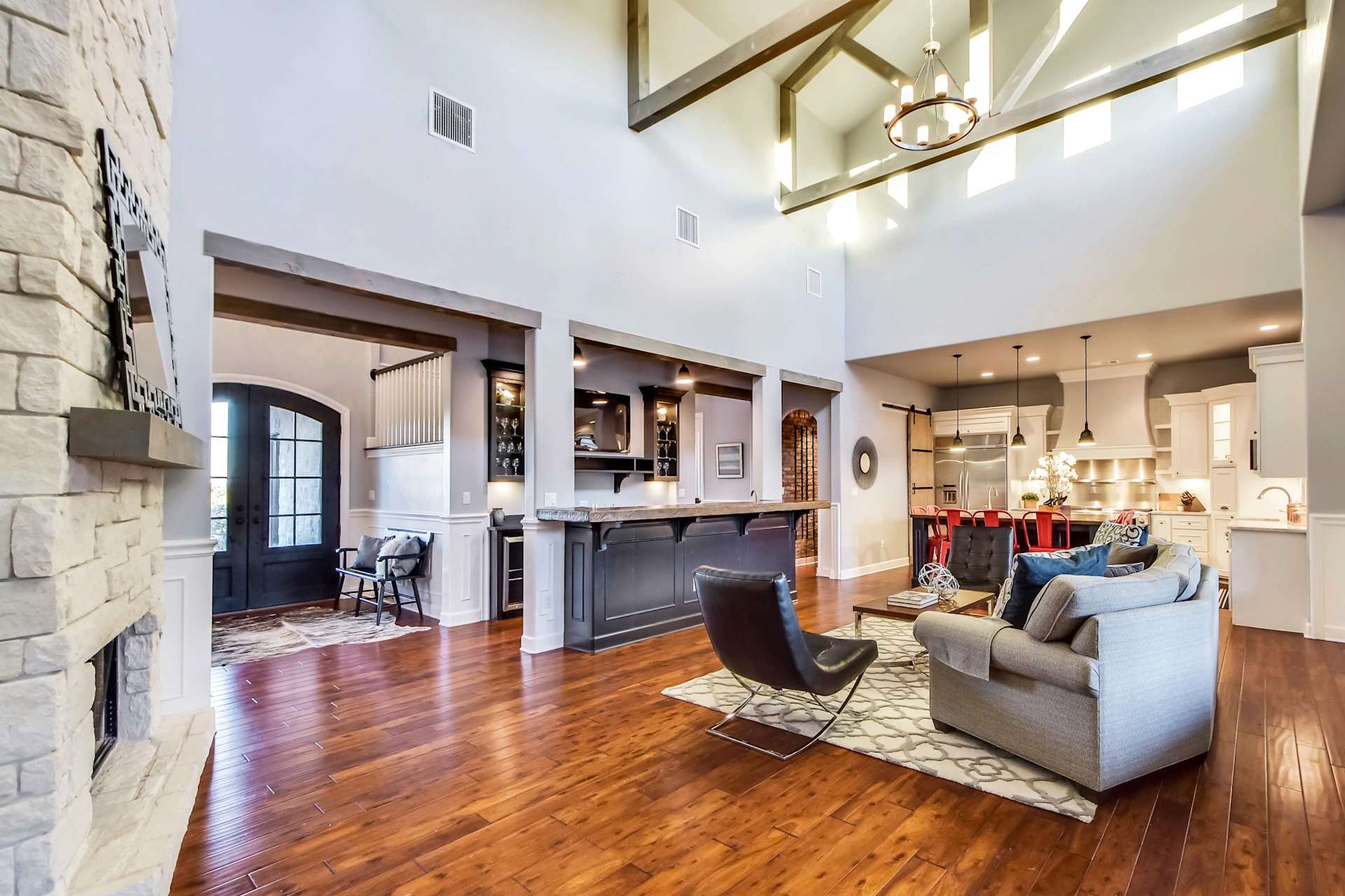 Entertaining is effortless in the main living area of this bold and bright home. Breeze in the front door of this Dripping Springs dream and you'll immediately be whisked into the exquisite interior of the main living room, which has direct access to the kitchen, full bar, and wine cellar for holiday spirits.