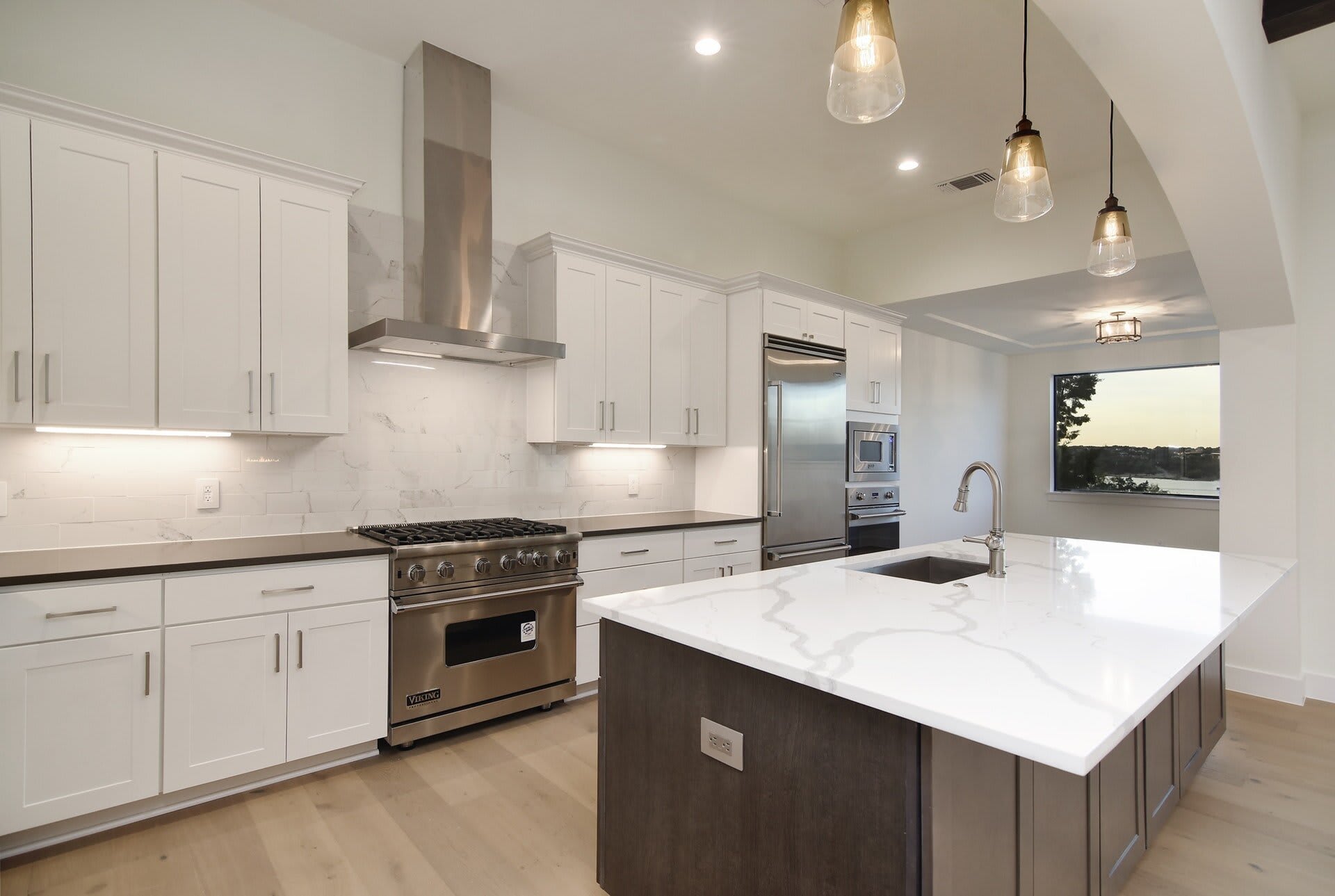 Celebrate Thanksgiving at 101 Edgewater, and invite all your friends and family to join! The open-concept home features views of Lake Travis that guests are sure to enjoy while waiting for dinner. Cooking is easy and enjoyable at this residence—Viking appliances including a built-in refrigerator, French Oak hardwoods, and high ceilings make it the ideal atmosphere for preparing a holiday meal.