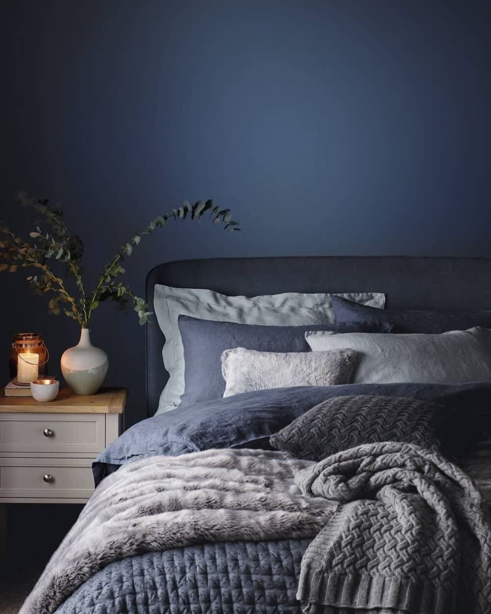 Even though Classic Blue is a cool color, there are countless ways to create a homey warmth with the shade. Try layering Classic Blue with navy and powder blue textiles, natural fibers, and understated greenery.