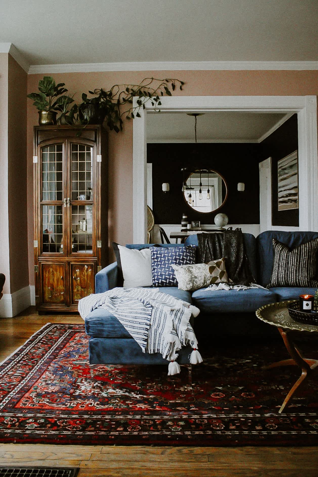 Even in a home with warm tones, a pop of Classic Blue can go a long way and add the perfect contrast to your otherwise copasetic palette. Our favorite way to incorporate this shade into your home? A pop of blue in the living area — Especially when that pop of color is the couch!