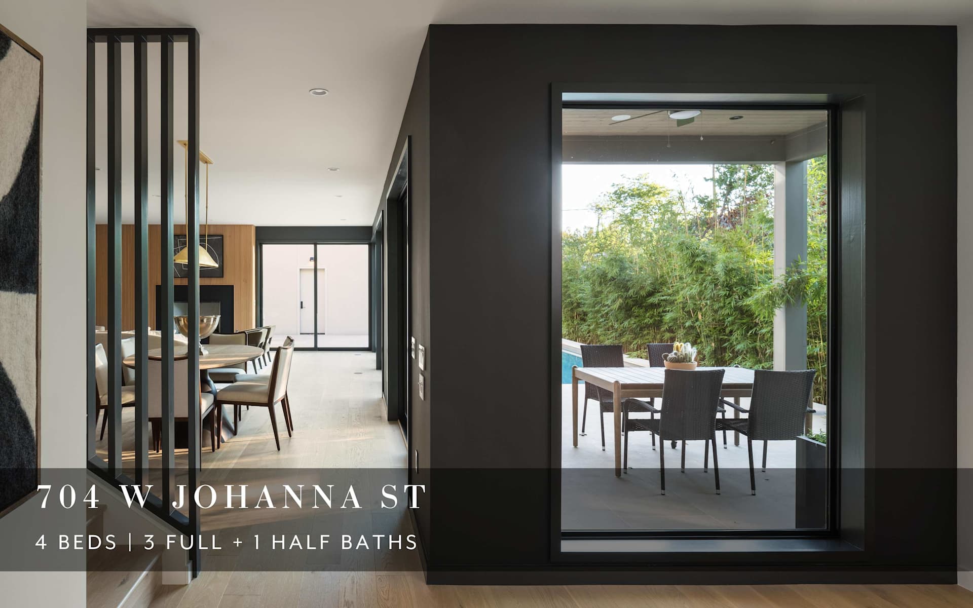 704 W Johanna St is a recently completed, new construction home in the 78704/Bouldin area. This high-end design by Stuart Sampley + Roost Custom Homes is modern and open, yet warm and inviting. From the entrance, the floor-to-ceiling windows bring the outside in and flood the space with natural light.