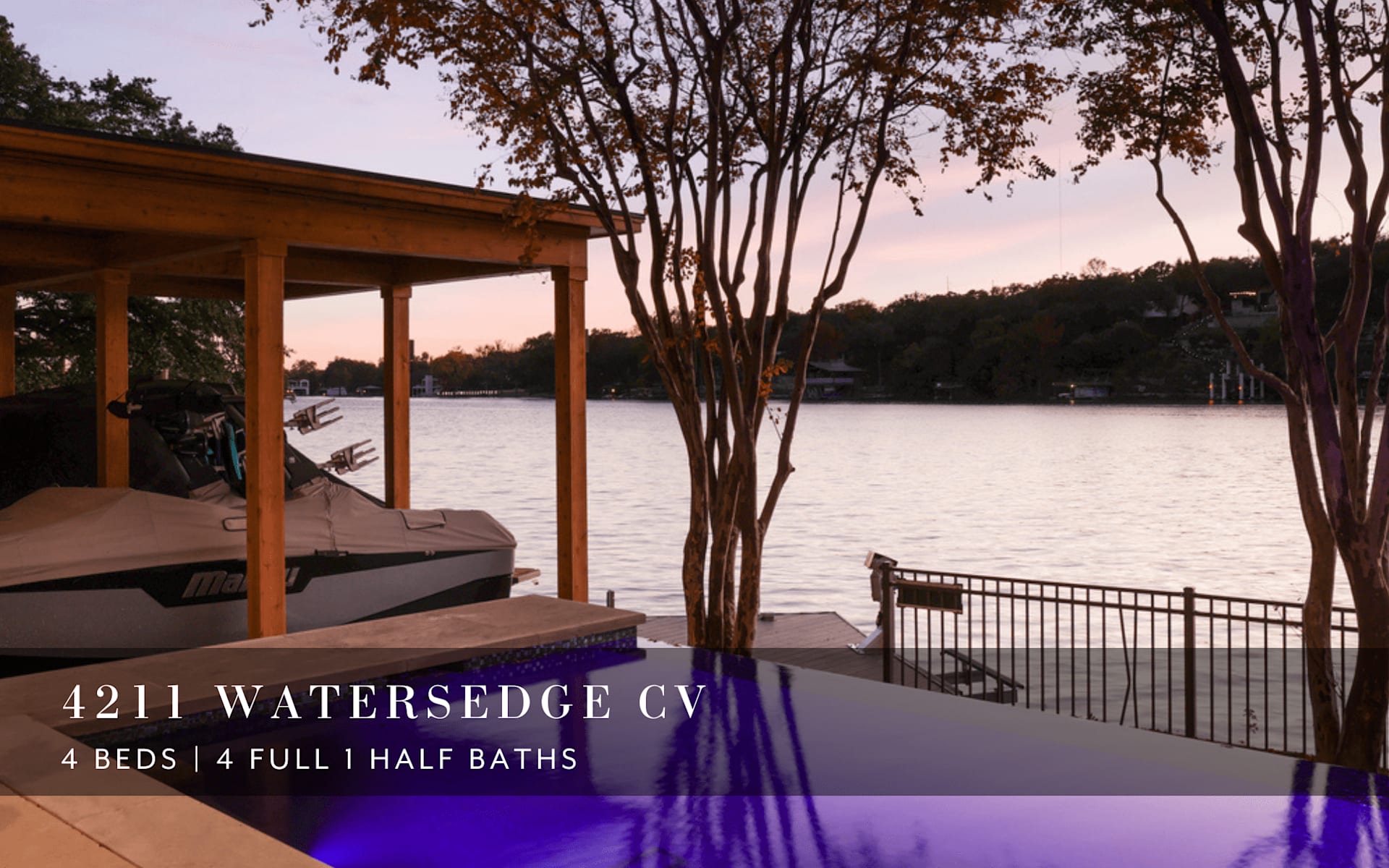Stunning contemporary on ultra-desirable Wateredge Cove; so close to the water you will hear it gently lapping at the dock as you enjoy views up and down Lake Austin. Maximizing the lake view, the home opens to a large terrace bordered by a negative-edge pool that seems to spill into the water below; you will be drawn outdoors again and again to enjoy an alfresco meal cooked up in the summer kitchen, followed by a cozy nightcap around the fire.