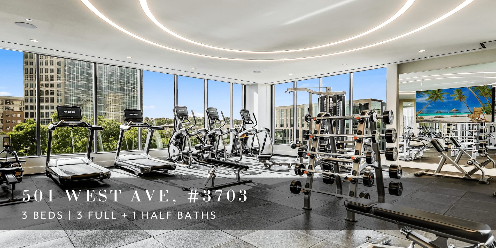 This penthouse is situated in the Fifth & West building and features a 3-bedroom, 3.5-bathroom condo that boasts pinnacle Downtown Austin views. Luxury amenities include a resort-style pool and spa, a yoga studio, a fitness center, a dog park, and ample community areas.