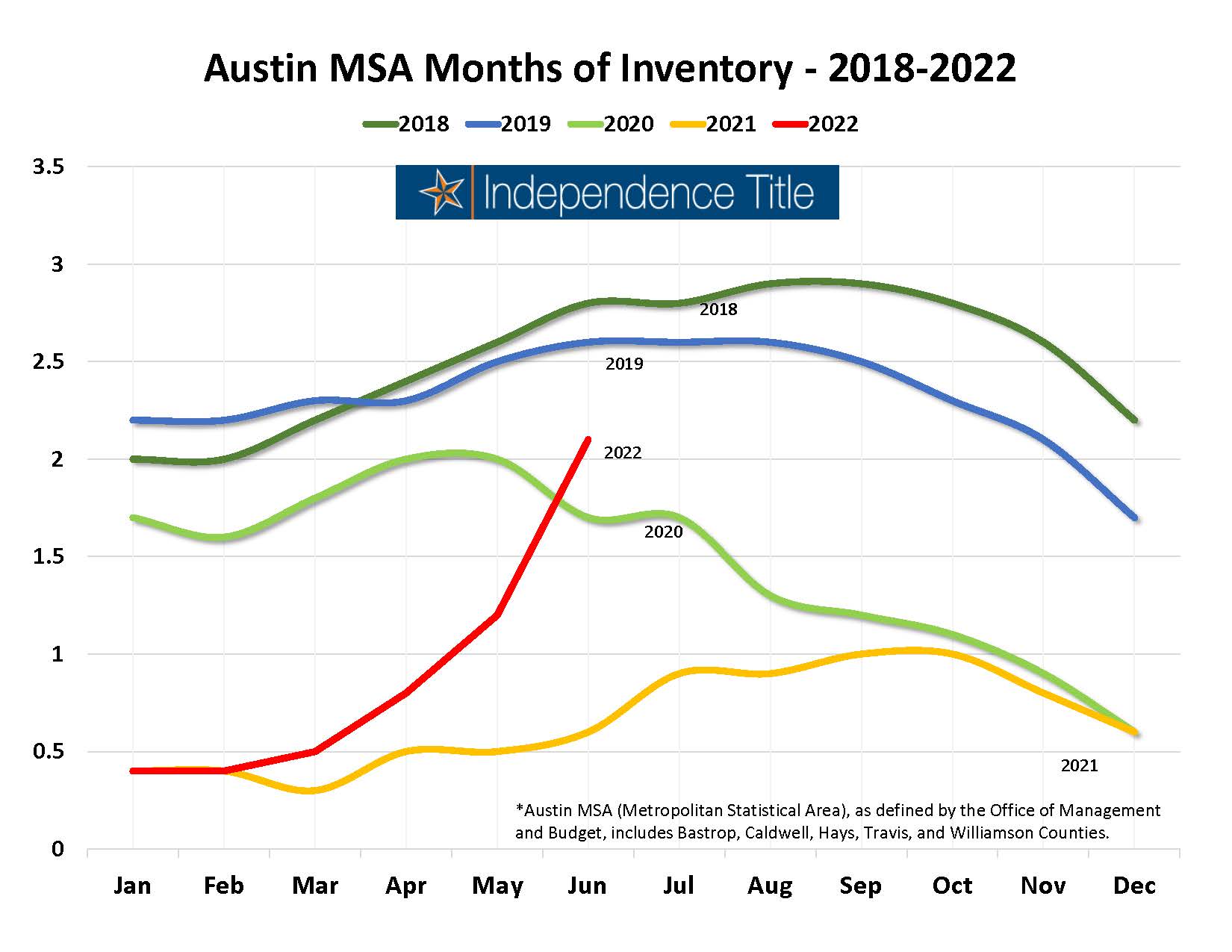 Alongside increasing inventory levels, property values are increasing and holding strong. 2022 property values in the Austin Metropolitan Statistical Area are still significantly higher than in years 2018, 2019, 2020, and 2021 (Independence Title). See graph below.