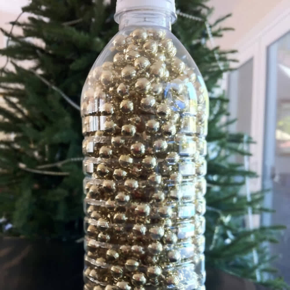 Keep tree trimmings in water bottles. Keep garland from getting twisted in storage by using empty water bottles to keep it in one place. Each water bottle will hold two strings of beaded garland!
